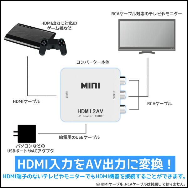HDMI 入力 を コンポジット AV 出力 へ 変換 1080P 対応 HDMI 変換器 ドライバ HDMI 変換 RCA