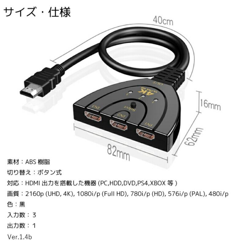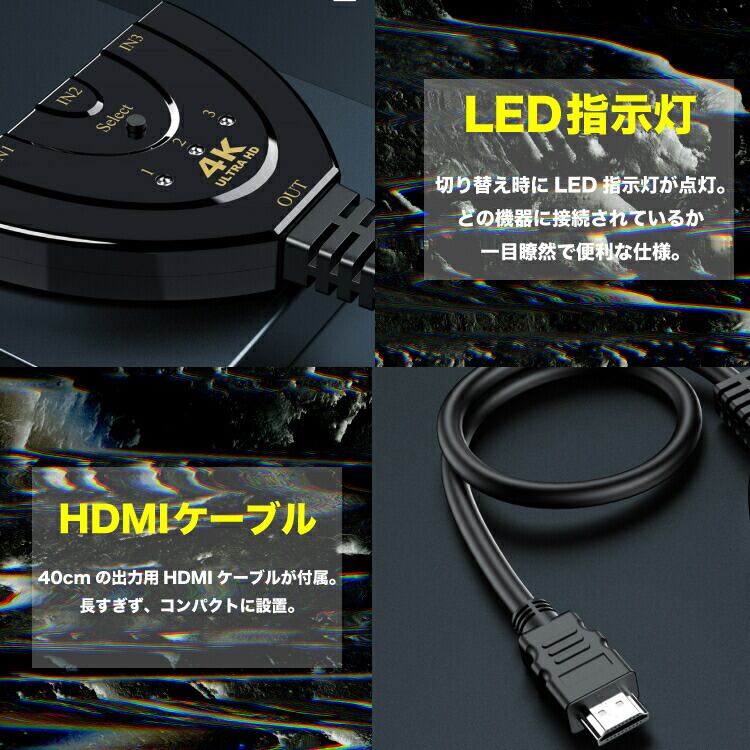 HDMI 切替器 セレクター 切り替え 3HDMI から HDMI メス → オス HDMIスイッチャー 送料無料 3ポート