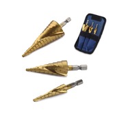 スパイラルドリル ステップドリル 3本セット ステンレス用 タケノコドリル 六角軸 収納ケース付き 穴あけ ミリ( mm ) HSS鋼 ハイス鋼 六角 螺旋