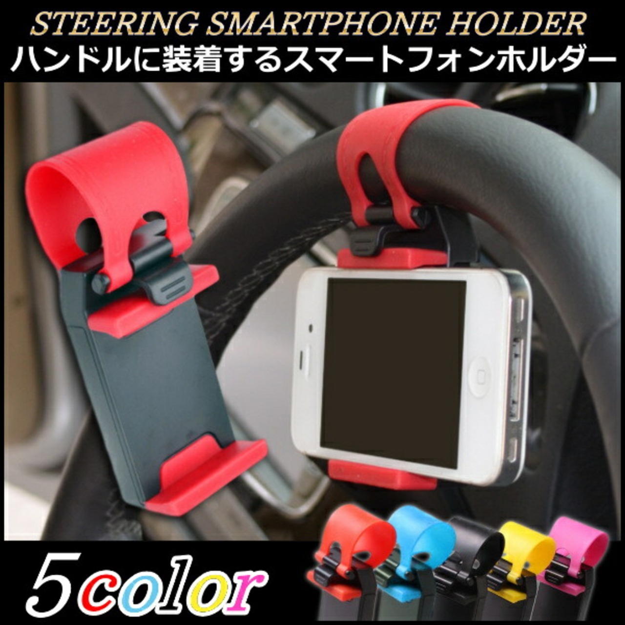 車載ホルダー ハンドル スマホホルダー スマートフォン ステアリング 携帯ホルダー iphone スマホ 対応 ハンズフリー 携帯 自動車 車 送料無料
