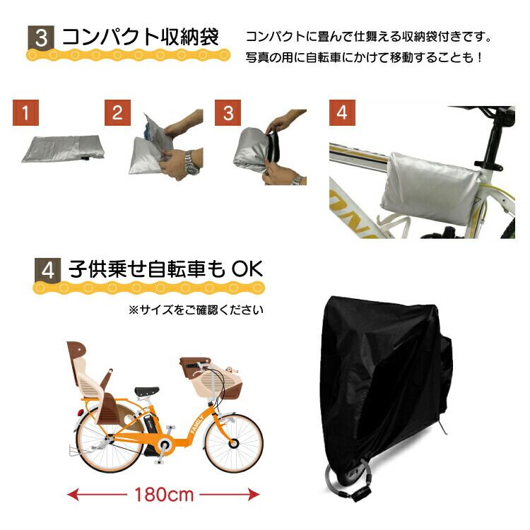 カバーは折りたたんで自転車に引っ掛けることができるので、邪魔になりません。