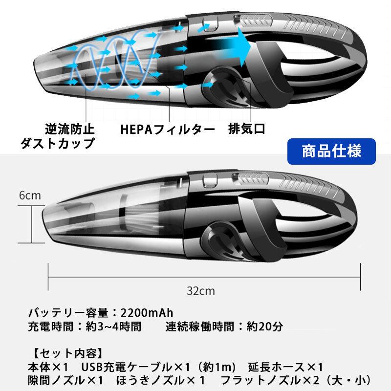 ハンディクリーナー コードレス 強力 充電式 車 サイクロン ハンディー掃除機 掃除機 小型掃除機 コードレス掃除機 軽量 USB