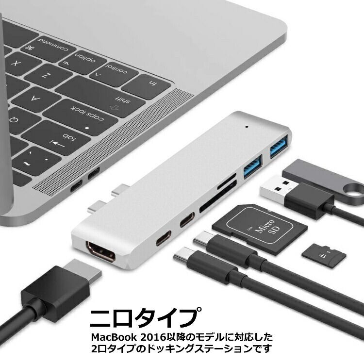 Type-C ハブ HDMI 変換 7in1 アダプター マルチハブ micro SD MacBook Pro Air 多機能 高機能 ポート 増設 ドッキングステーション 4K タイプC typeC
