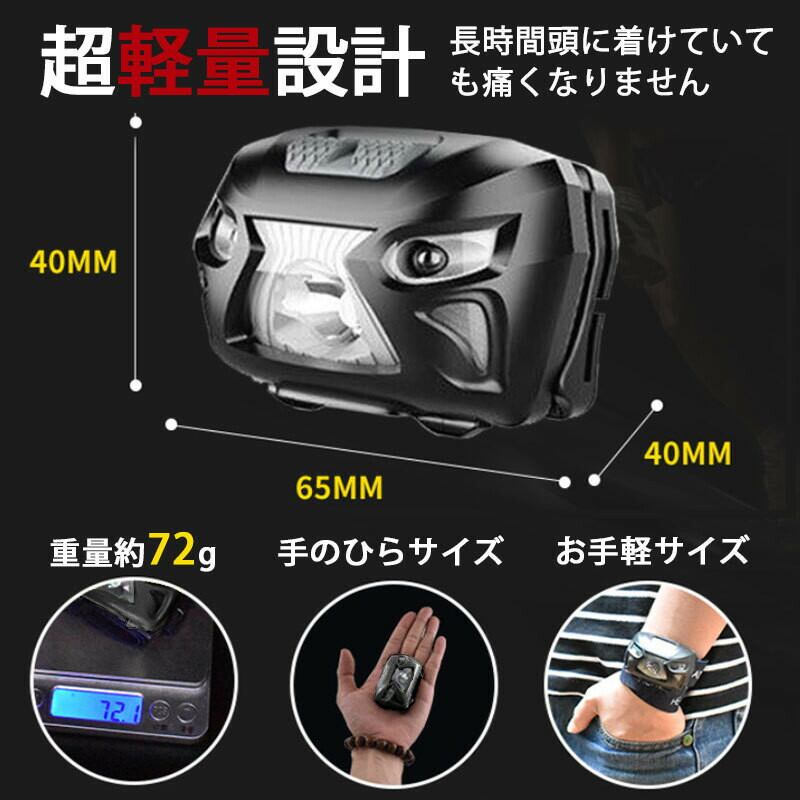 ヘッドライト 充電式 LED ヘッドランプ ヘルメット 防水 明るい 軽量 釣り センサー 充電式 LEDライト usb充電 調光 防災 アウトドア ワークライト