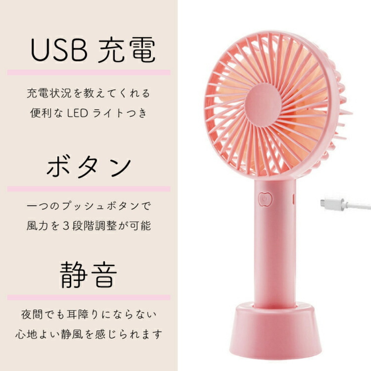 扇風機 ハンディ 強風 静音 強力 おしゃれ 軽量 小型 USB 充電 式 涼しい 夏 ハンディファン 可愛い ミニ 携帯 静か 卓上 デスク 手持ち