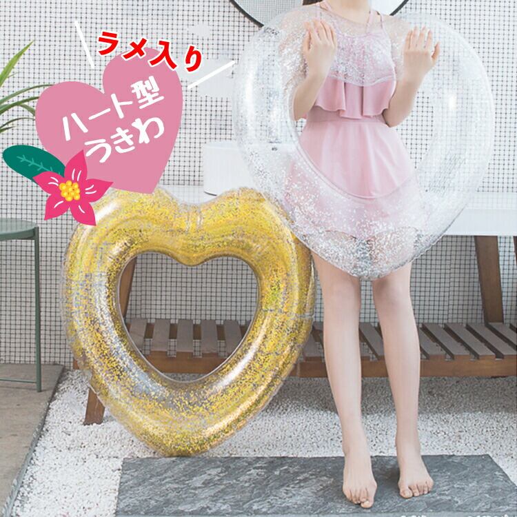 浮き輪 フロート 90cm 子供 大人用 ハート 大きい おしゃれ ラメ 可愛い スパンコール ホログラム クリア 透明 プール 海