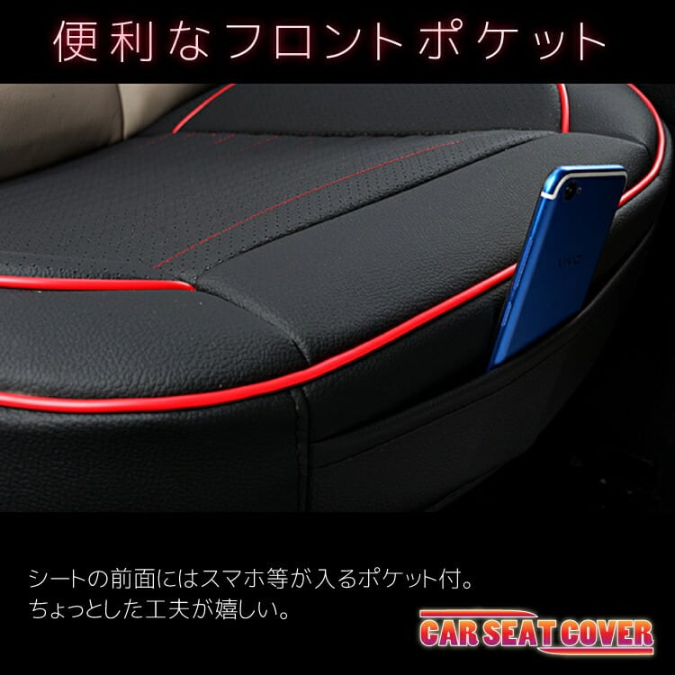 シートの前面にポケットがついていて、小物の収納に便利