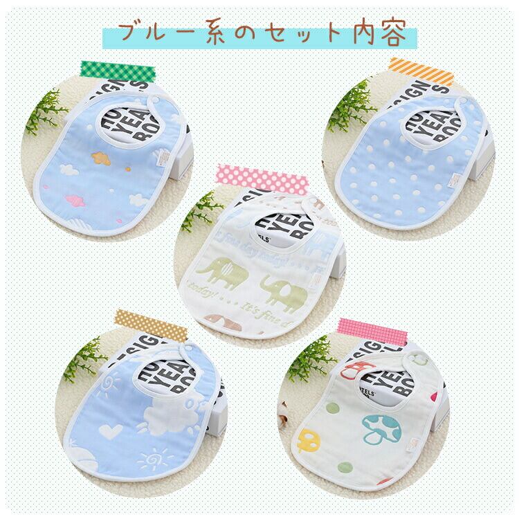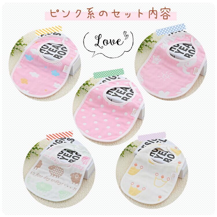 可愛い赤ちゃん用のよだれかけお得な5枚セットです。