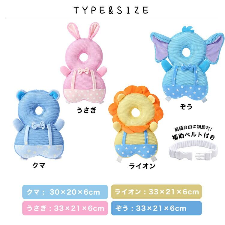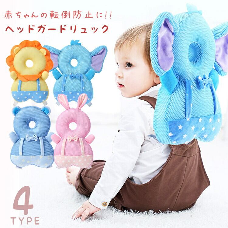 ヘッドガード リュック 赤ちゃん 頭 かわいい おしゃれ 転倒 ごっつん 防止 ベビー ヘルメット クッション 安全 子供 男の子 女の子 アニマル 動物 紐 ハーネス