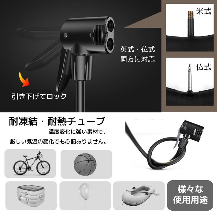 空気入れ 自転車 ボール 仏式 英式 小型 コンパクト エアーポンプ 踏み込み式 手動 浮き輪 アウトドア