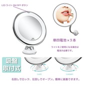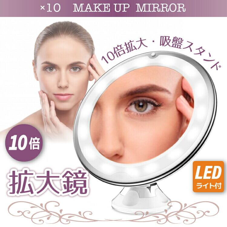 拡大鏡 10倍 化粧 ミラー メイク LED 鏡 フレキシブル 卓上 吸盤 スタンドミラー 角度調整 電池式