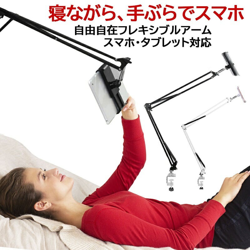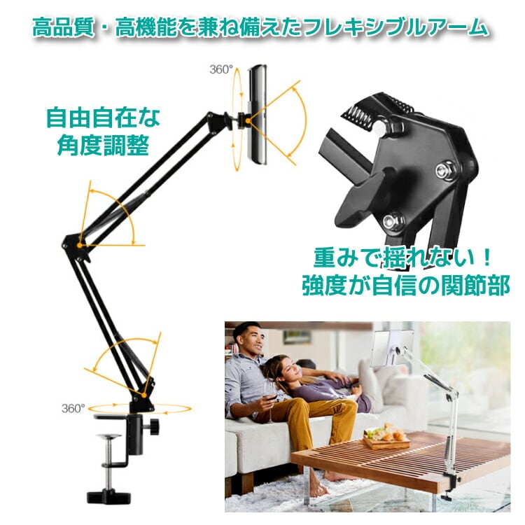 スマホスタンド 寝ながら アーム クリップ タブレットスタンド フレキシブル クランプ 卓上 ベッド 机 固定 角度調整 高さ調節 360度 スマホ タブレット ベットスタンド 丈夫 揺れにくい
