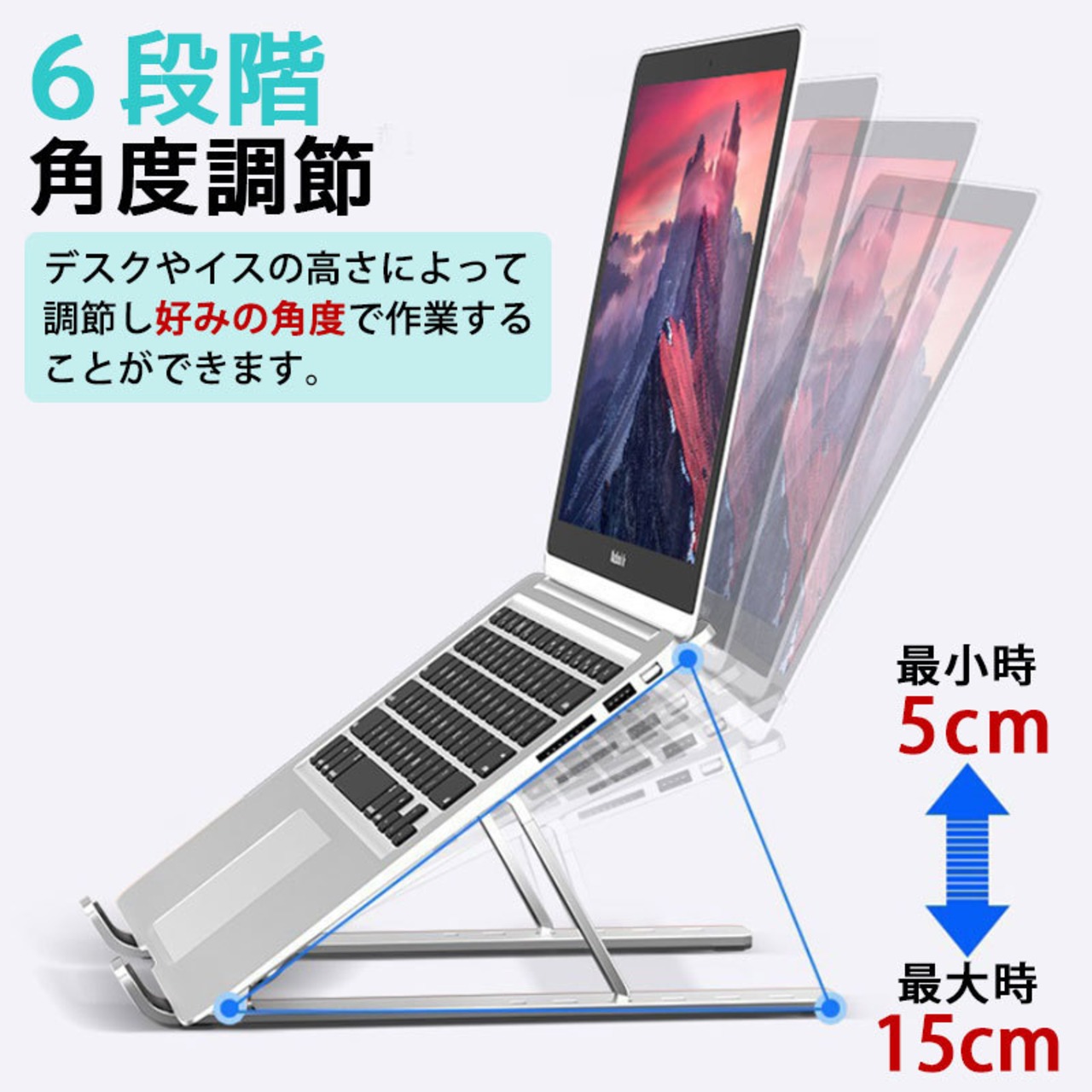 ノートパソコン スタンド 折りたたみ ノートパソコンスタンド 折りたたみ式 角度調整 折り畳み アルミ 軽量 MacBook ノートPC ラップトップ マックブック 高さ調整 持ち運び 収納袋付