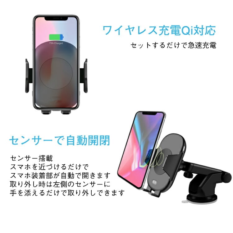 Qi対応 センサー内蔵 自動開閉 高品質スマートフォン用車載ホルダー 急速充電 高速充電 強力固定