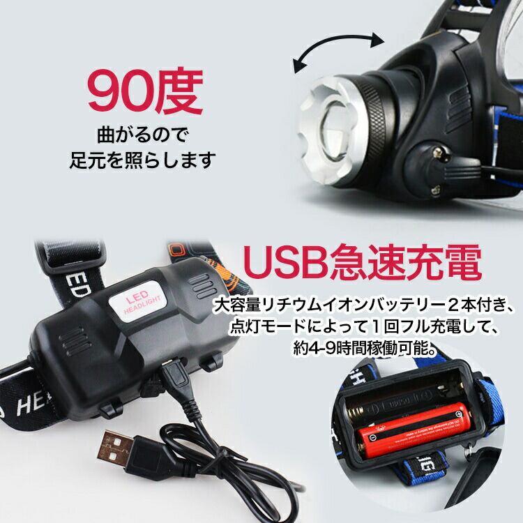ヘッドライト ヘルメット用 LED 作業用 充電式 防水 明るい 軽量 釣り アウトドア センサー LEDライト usb充電 調光 防災 作業 ズーム