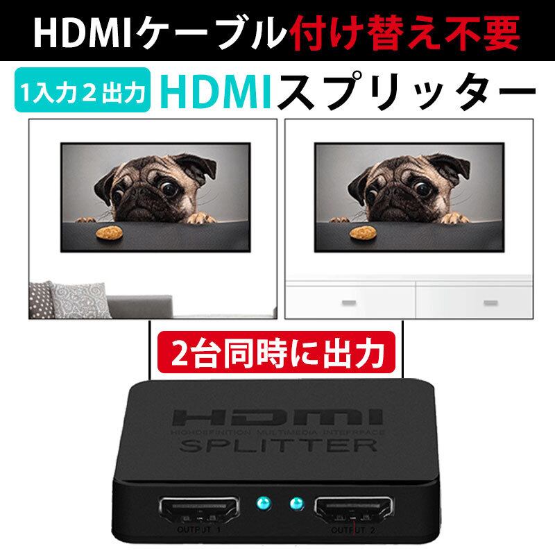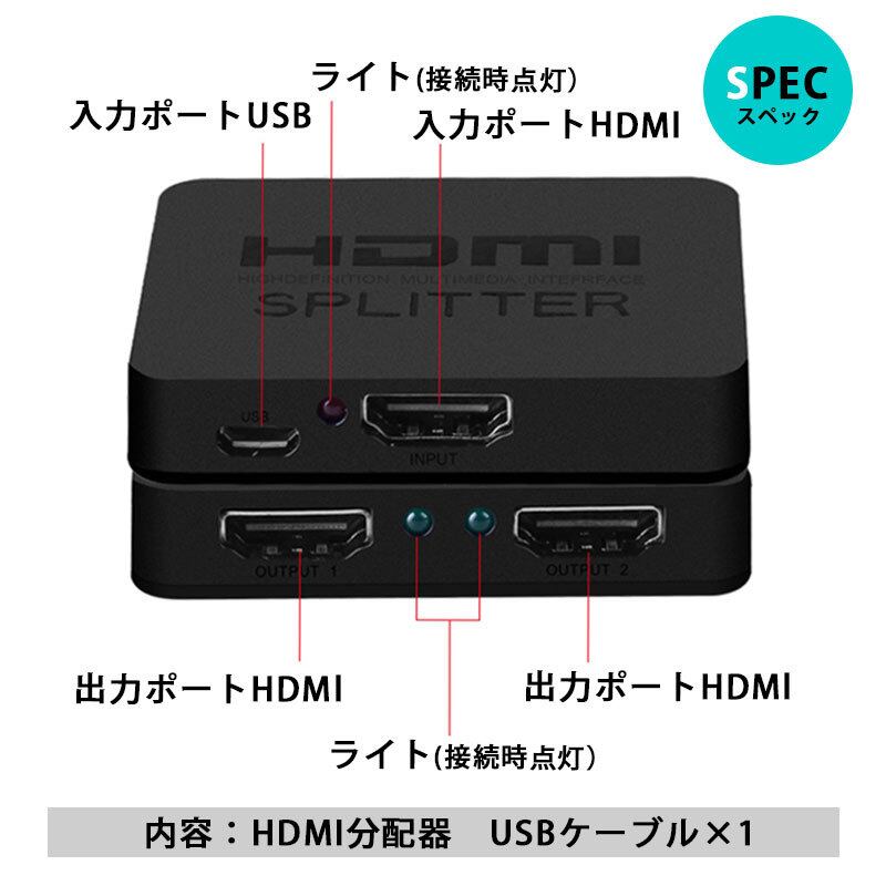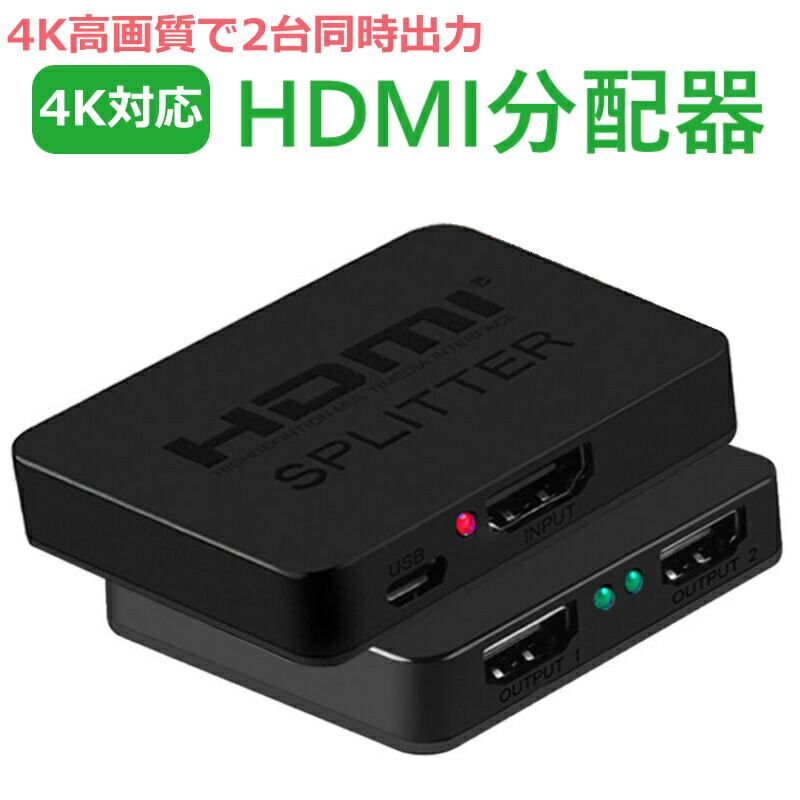 HDMI 分配器 HDMIスプリッター 4K 2K 対応 高画質 映像 同時出力 1入力 2出力 小型 薄型 コンパクト USB