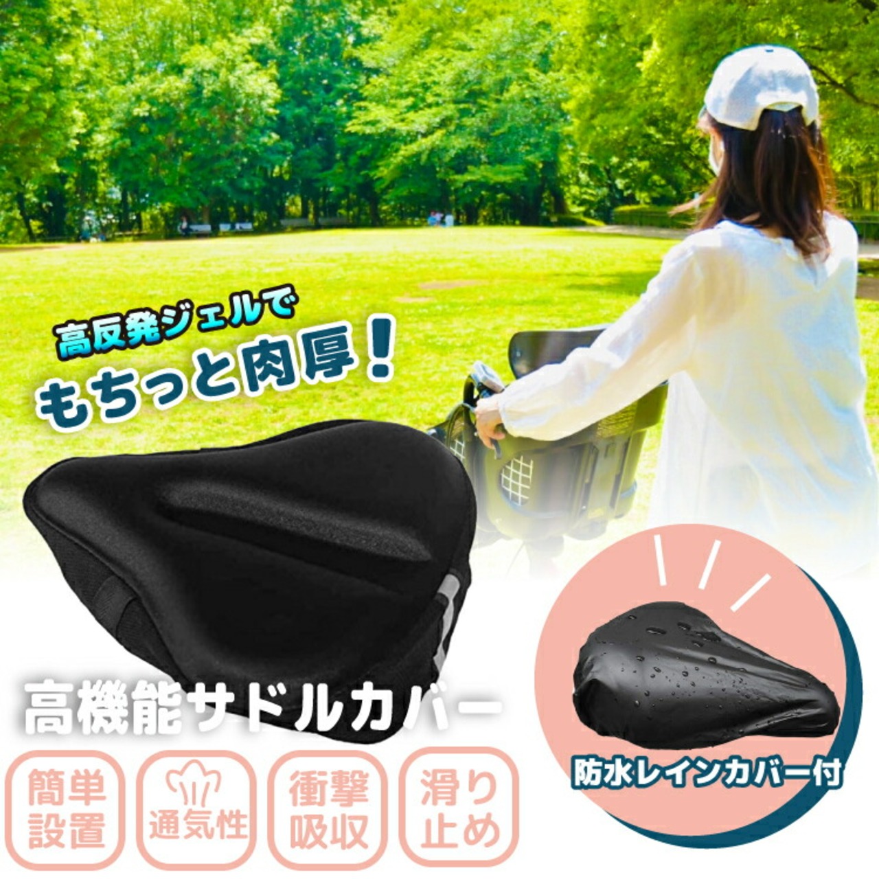 サドルカバー 自転車 ママチャリ 電動自転車 おしゃれ 椅子 痛くない シート カバー クッション パッド 大型 高反発 ジェル 入り 防水 カバー 付き 簡単取付