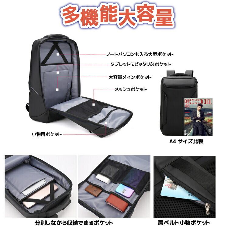 リュックサック リュック メンズ 大容量 おしゃれ 防水 通学 通勤 スポーツ スクエア 四角 撥水 バックパック ビジネスリュック デイバッグ シンプル USB