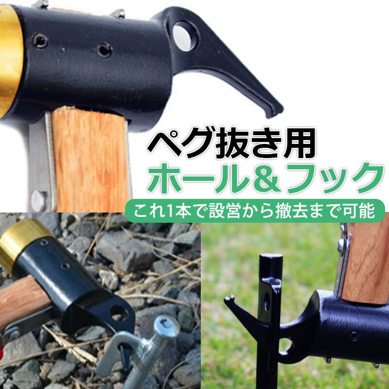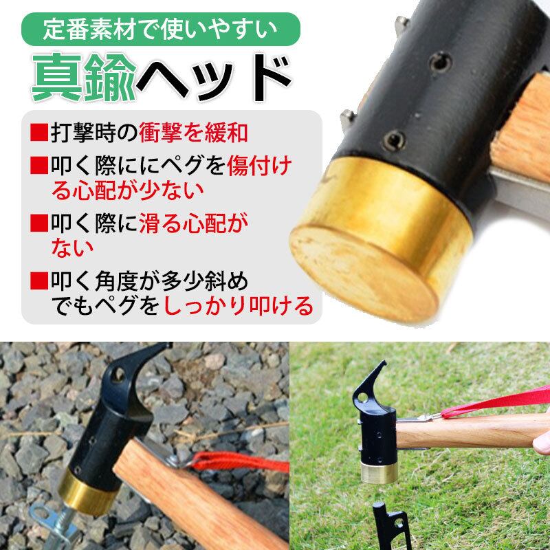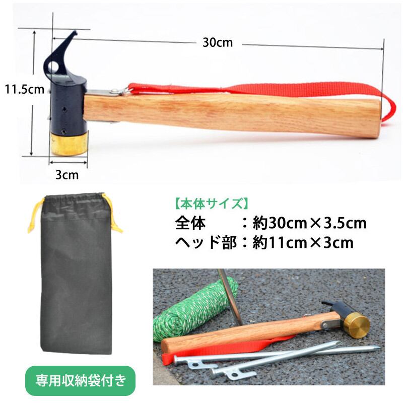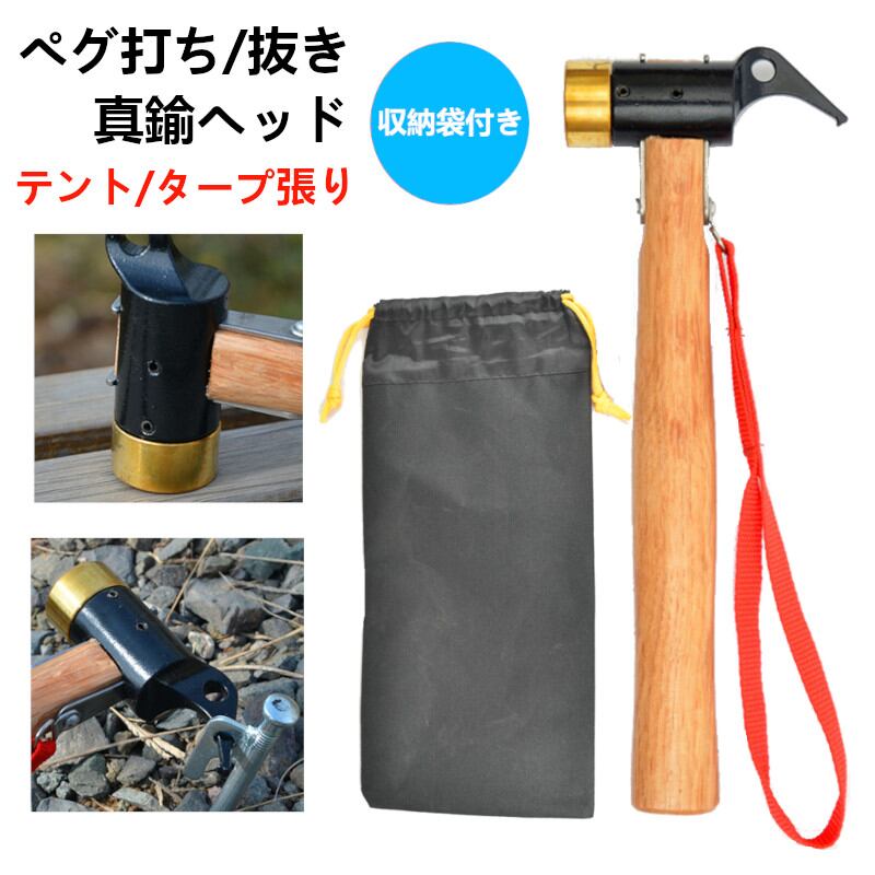 ペグハンマー 軽量 真鍮 ヘッド ペグ ハンマー テント 多機能 ペグ打ち ペグ抜き キャンプ アウトドア テント タープ 設営 軽量 BBQ 収納袋付 ストラップ付