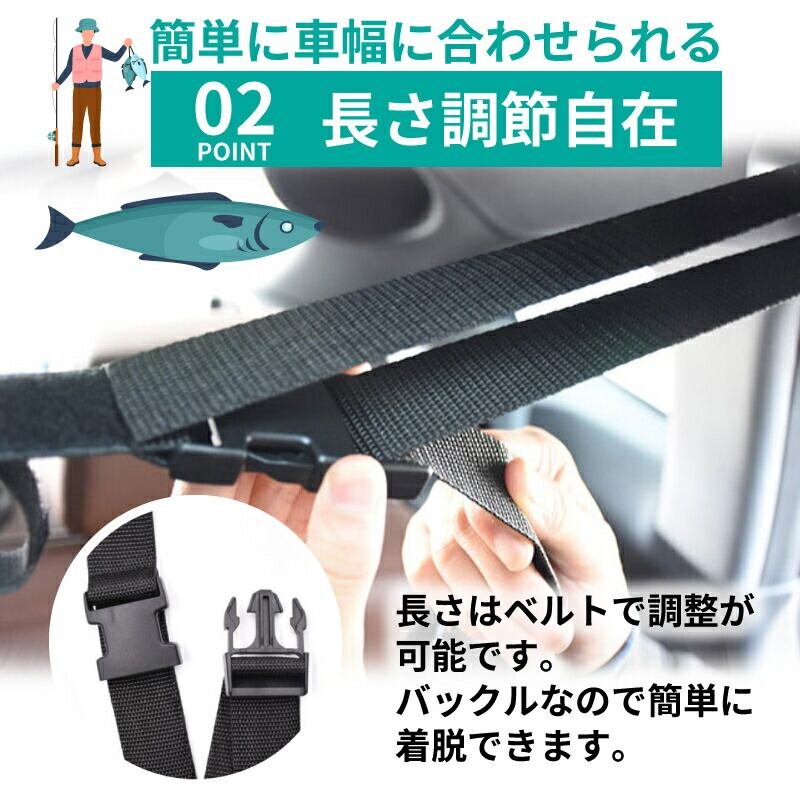 ロッドホルダー 車 ベルト 壁掛け 固定 ロッド キャリー 車載 竿 キャリー ベルト 釣り 簡単設置 釣り竿 アシストグリップ 車内 釣具 フィッシング