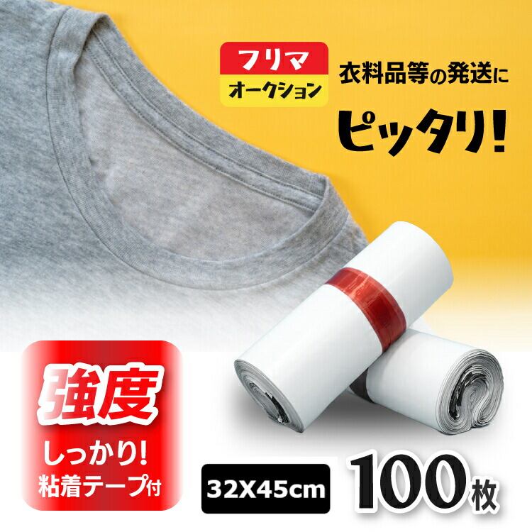 宅配ビニール袋 100枚 A3 宅配 ポリ袋 32x45 丈夫 袋 ネコポス 強力テープ付き 透けない クリックポスト ゆうパケット 対応 サイズ 包装 梱包 ビニール 梱包材