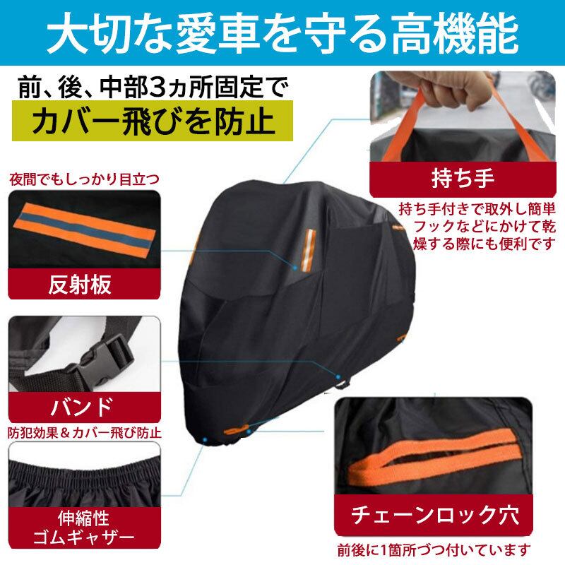 バイクカバー 厚手 防水 300D バイク スクーター 125cc 原付 中型 カバー 盗難防止 反射板 日焼け防止 飛ばない リアボックス