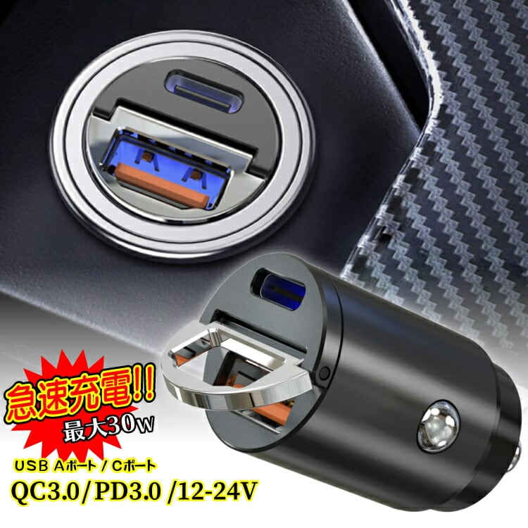 シガーソケット USB 2口 急速充電 車 充電器 PD QC 3.0 12V 24V シガー ソケット 変換 type-C タイプC カーチャージャー 電源 USB-A 2ポート 4.8A iphone スマホ