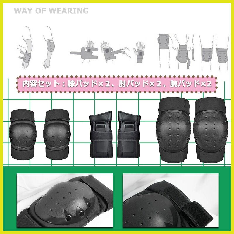 プロテクター キッズ 子供 自転車 セット キッズプロテクター 手首 肘 膝 6点セット 保育園 幼稚園 小学生 中学生 園児 保護 膝 当て 怪我防止 子供用 一輪車 スケボー スケート キックバイク プロテクター 子供用 S / L サイズ
