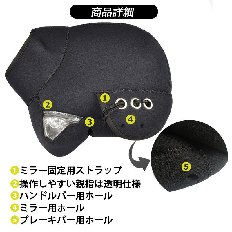 バイク ハンドルカバー 防寒 バイク用 ハンドル ウォーマー 暖かい 防風 冬 雪 風 除け バイク ネオプレーン グローブ 保温 左右セット ミニバイク スクーター ビックスクーター 無地 シンプル