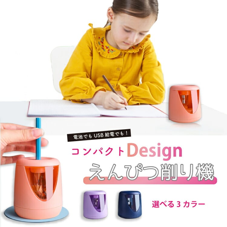 鉛筆削り 電動 子供 鉛筆削り器 ミニ えんぴつ削り おしゃれ こども usb 鉛筆 乾電池 軽量 小型 小学生 電動 シャープナー コンパクト 滑り止め付 学校 事務 学習 勉強