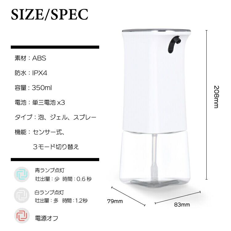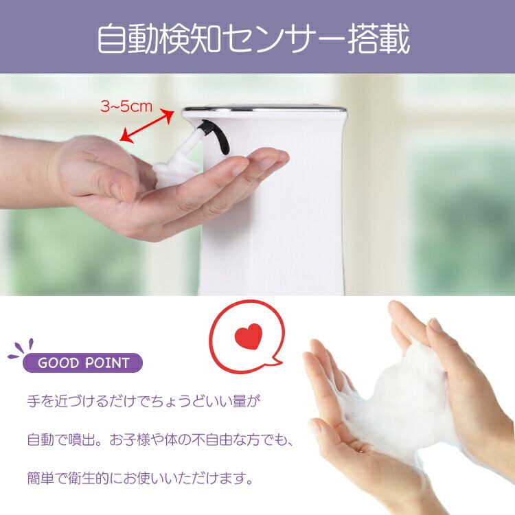 ソープディスペンサー 自動 泡 壁 電池式 おしゃれ 壁掛け 卓上 電池 センサー ハンドソープ アルコール 洗剤 霧 消毒液 キッチン 玄関 ディスペンサー オート アルコール 消毒 液体洗剤