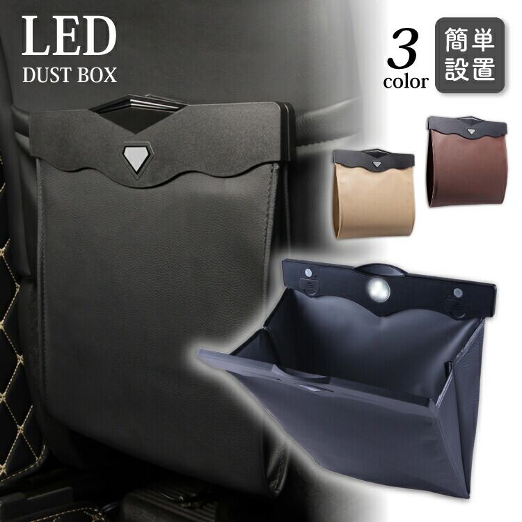 車 ゴミ箱 おしゃれ 車用 後部座席 倒れない 吊り下げ 固定 車載用 ごみ箱 アイデア 車載 収納 LEDライト 折りたたみ シンプル シートバック マグネット 簡単設置 大容量